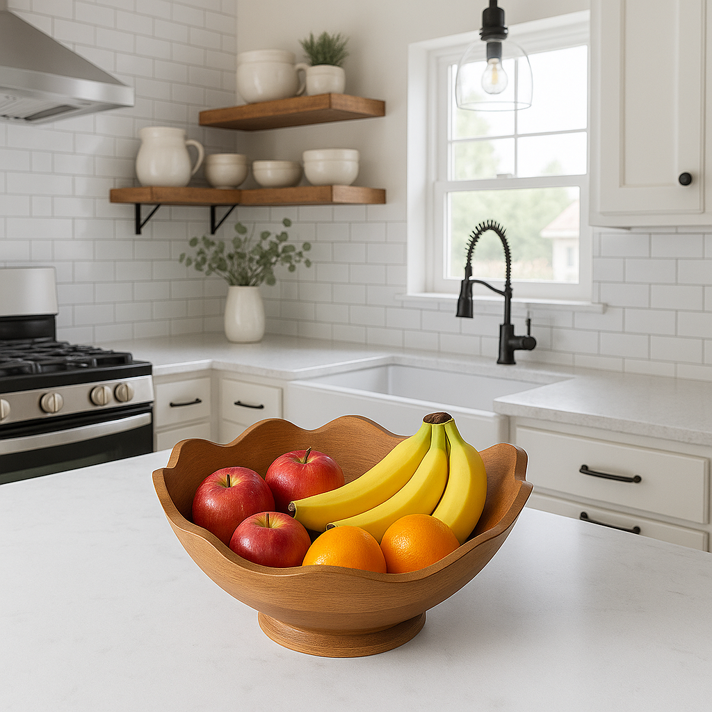 Bring a touch of joy to your life and home with our 12" Scalloped Pedestal Mango Bowl. As an artisan-crafted mango wood product, it is not just a decorative piece but a testament to thoughtful design and careful craftsmanship. Perfect for your kitchen or tabletop decor, its unique wavy design and footed pedestal make it an eye-catching addition to any room. Enjoy the beauty of mango wood in your living space year round.