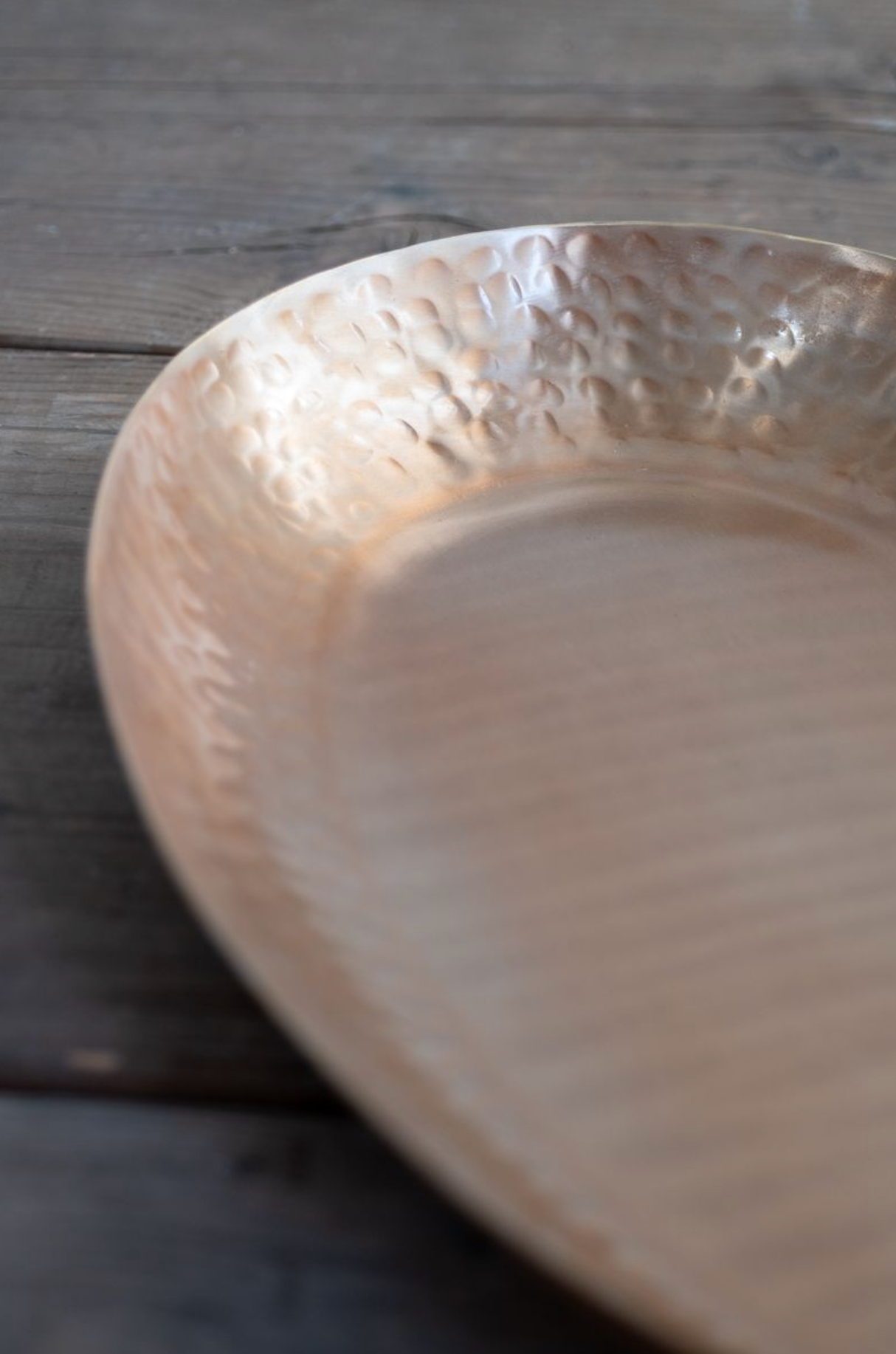Elevate your entertaining and styling with the Oval Brass Platter. Crafted from food-safe, hammered brass, this versatile platter adds timeless beauty and a subtle glow to any space. The warm brass finish complements a variety of decor styles, including cottage, farmhouse, traditional, and modern interiors. Perfect for serving bread, desserts, or fresh fruit, the platter also works beautifully as a decorative catch-all tray. Style it with candles, picture frames, or seasonal accents to add depth and shine to coffee tables, consoles, or kitchen counters. Its handcrafted texture and rich tone bring a curated, collected feel to your hosting or home styling. Whether used for serving or display, the Oval Brass Platter combines classic craftsmanship with everyday versatility.