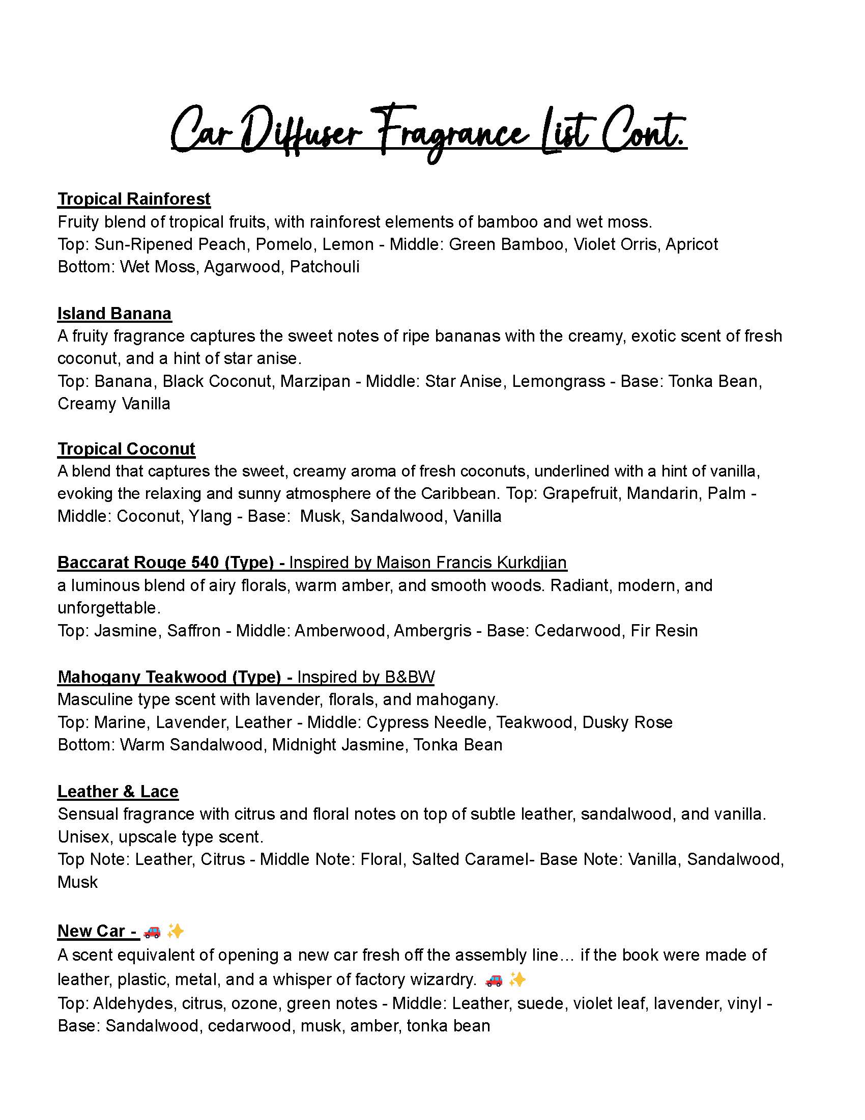 See List of Fragrances in pictures for a description of all the scents