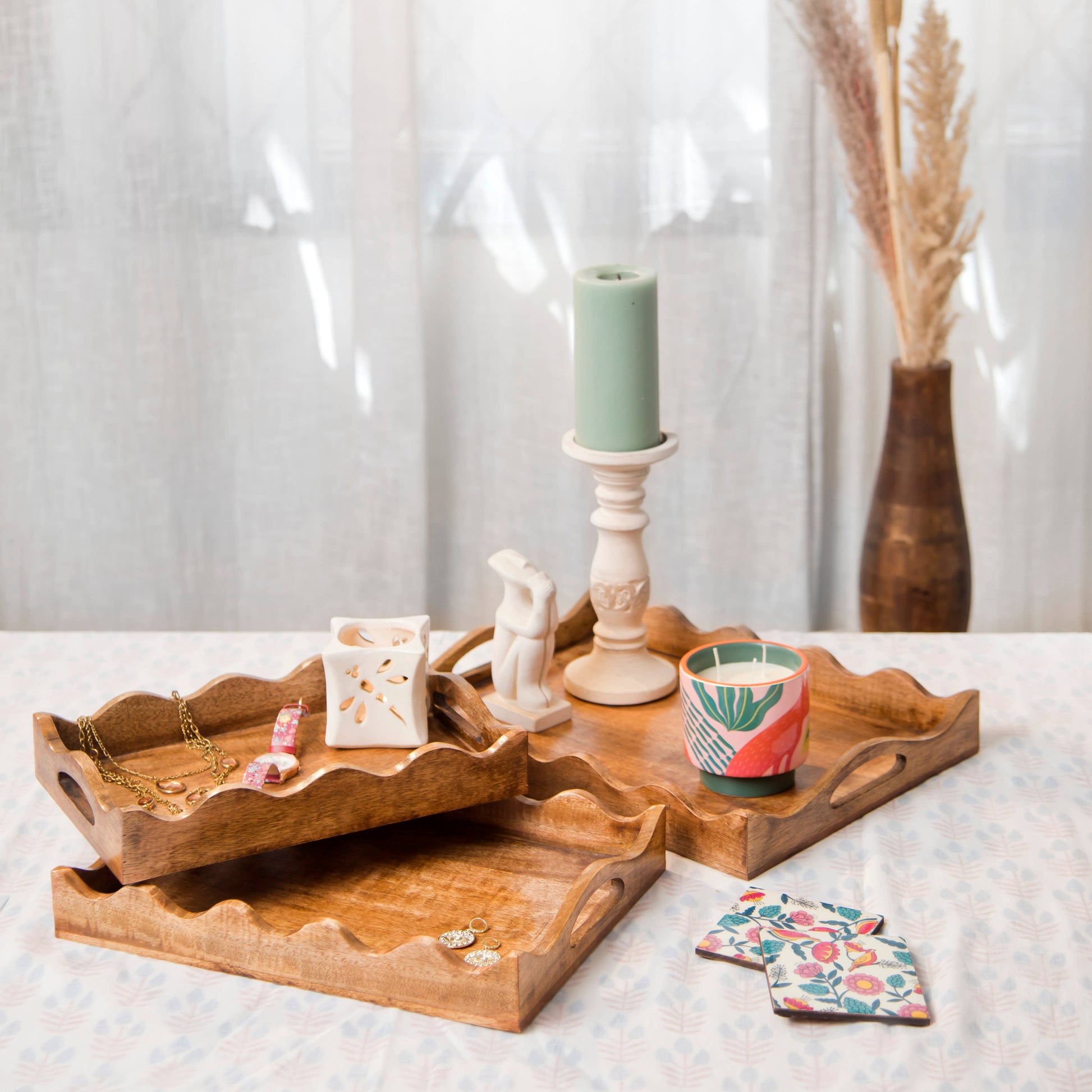 Add an artistic touch to your tablescape with the Scallop Tray, featuring a sculpted scalloped edge. Perfect for serving or displaying food and treasures, its easy-to-grip handles ensure seamless hosting. Handcrafted with precision and finished with care, this tray blends beauty and functionality. A Fair Trade product.